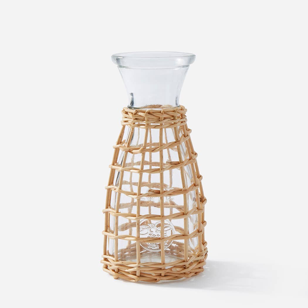 Rattan & Glass Jug Vase